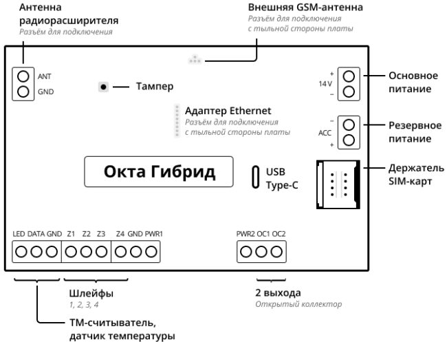 Конфигурирование. Разъем USB Type-C для проводного подключения конфигуратора.